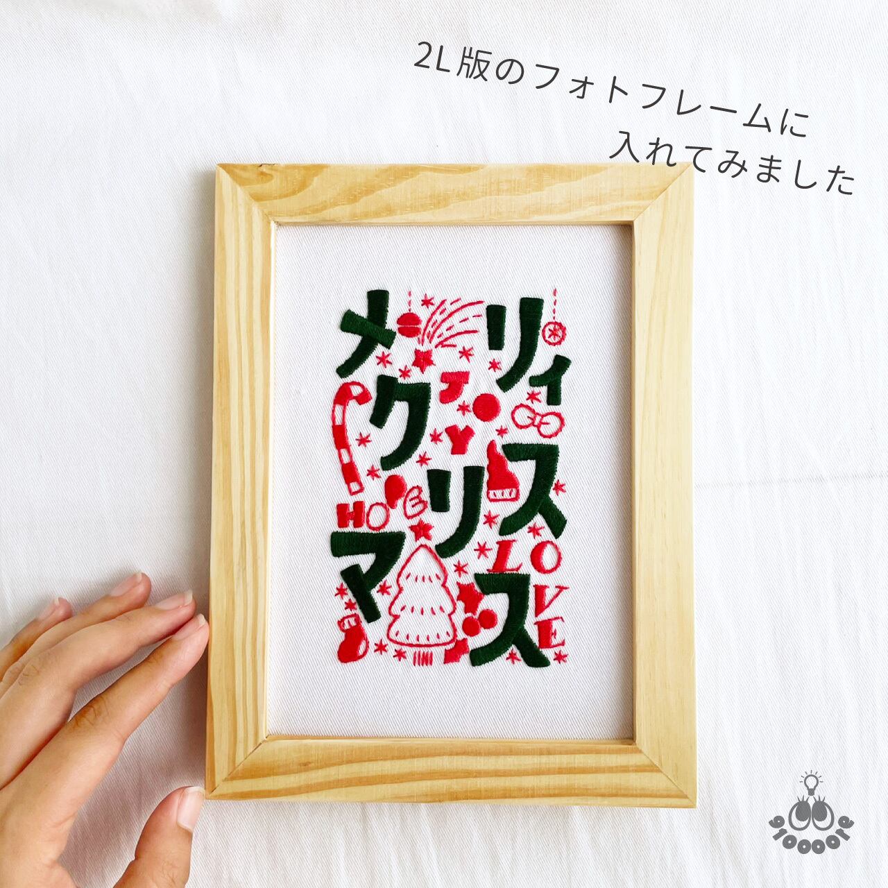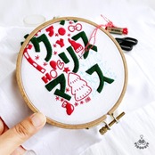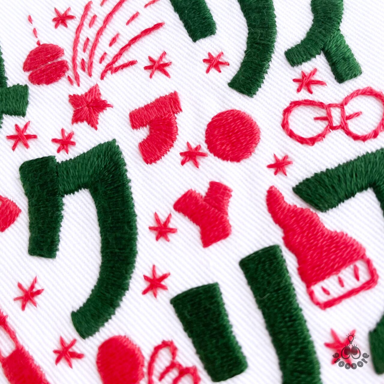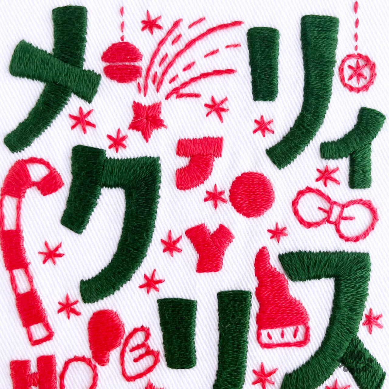 ポップなイラストと文字でクリスマスを楽しく表現した刺繍図案です。